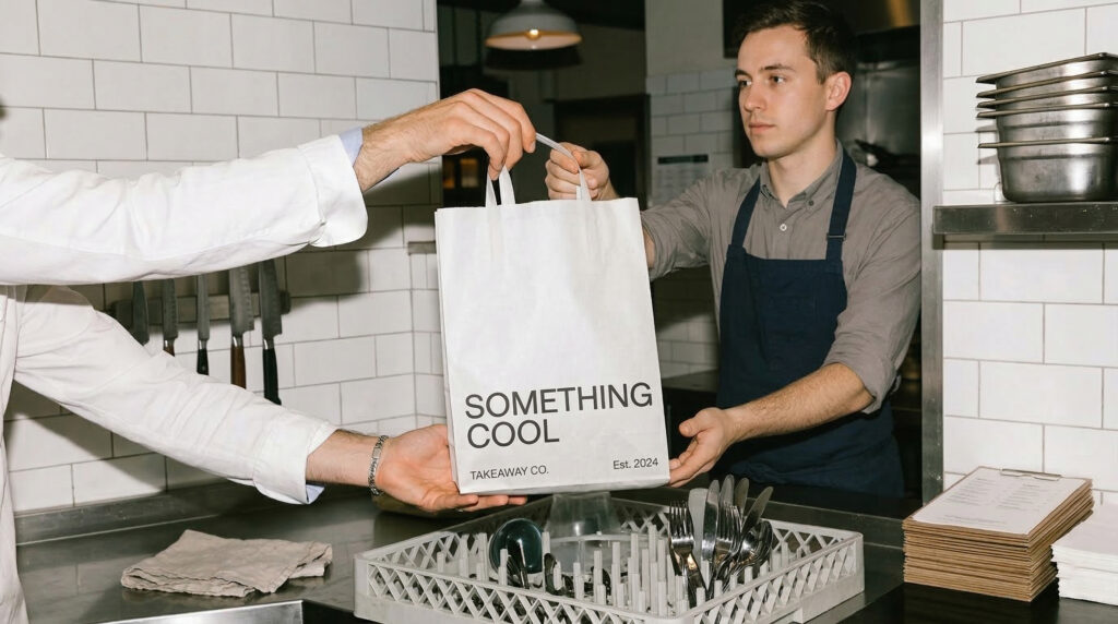 All three bag types at Takeout Goods are available with custom logo printing. That said, paper bags — especially handle bags — offer the cleanest, most premium branded result. The flat kraft or white surface takes print sharply, and the bag holds its shape in a way that keeps the logo visible and upright in the customer’s hand.